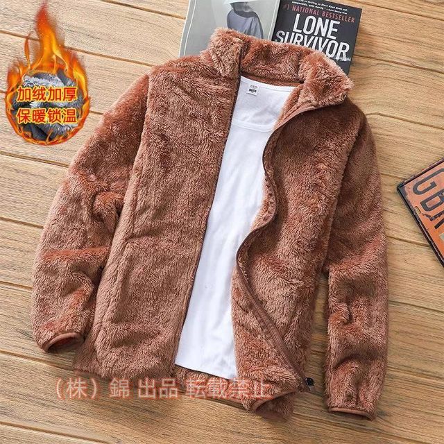 ボアジャケット メンズ フリースジャケット 厚手ジャケット 株式会社錦 アウター ブルゾン もこもこ 防寒 インナー ゆったり 立ち襟 無地 通勤 通学 おしゃれ
