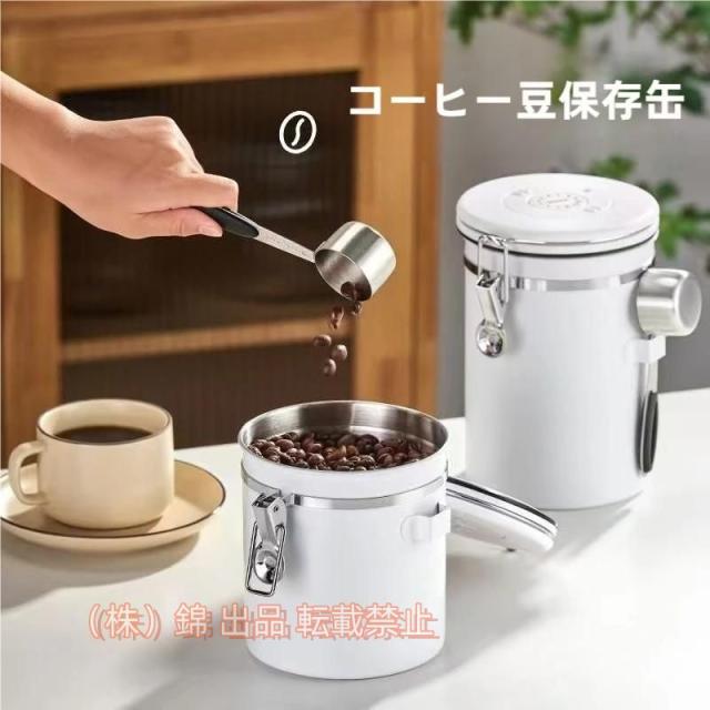 キャニスター コーヒー豆保存容器 スプーン付き 日付き記録 密封缶 雑貨 株式会社錦 円筒型 密封容器 コーヒー缶 防湿保存缶 北欧 シンプル キッチン