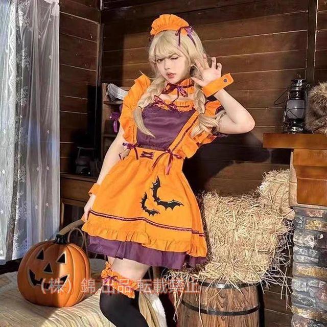 メイド服 ハロウィン オレンジ ハロウィン コスプレ レディース スプレ 仮装 レディース エプロン 株式会社錦カチューシャ 衣装 可愛い 大人用 ワンピース