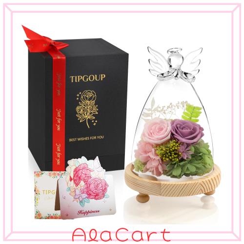 プリザーブドフラワー 誕生日プレゼント 女性 大サイズエンジェルのガラスドーム 枯れない花 バラ 紫 花 ギフト 人気 還暦祝い 敬老の日