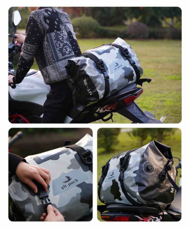 | 66L大容量のツーリングバッグ。 【ヘルメットもラクラク収納!】ワイドな入れ口が特徴のツーリングバッグ。ヘルメットもすっぽりと収めることができ、荷物の収納力が抜群です。 【ロールトップで気密性バツグン】ロールトップ式の閉じ口はしっかりとした気密性を提供。中の荷物をしっかりと保護し、安全に持ち運びできます。 【底板で荷物の安定感UP】底板を使用することで、バッグの崩れや変形を防ぎ、荷物の安定性が向上。ツーリング中でも快適な荷物の持ち運びが可能です。 【急な雨にも対応!】防水仕様のツーリングバッグなので、急な雨天や突然の雨でも心配なし。大切な荷物を安心して持ち運びできます。 【IPX7級の高い防水性能】IPX7級の防水性能を誇り、悪天候にもしっかりと対応。バッグ内の荷物をしっかりと保護します。 【高強度500D PVCナイロン採用】耐久性と強度に優れた高強度500D PVCナイロン素材。頑丈な作りで、ツーリング中の様々な状況に対応します。 【66Lサイズ】(約)63*33cmと大容量な66Lサイズ。長期ツーリングや大量の荷物を持ち運ぶ際にピッタリなサイズ感です。 【シンプルなデザインがおしゃれ】シンプルで洗練されたデザインが特徴。バイクのスタイルを損なわず、おしゃれな雰囲気を演出します。 | |