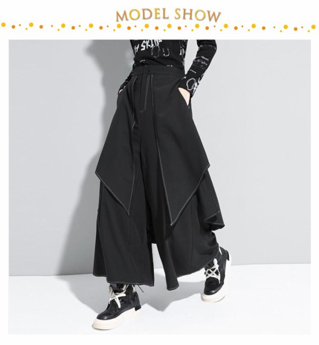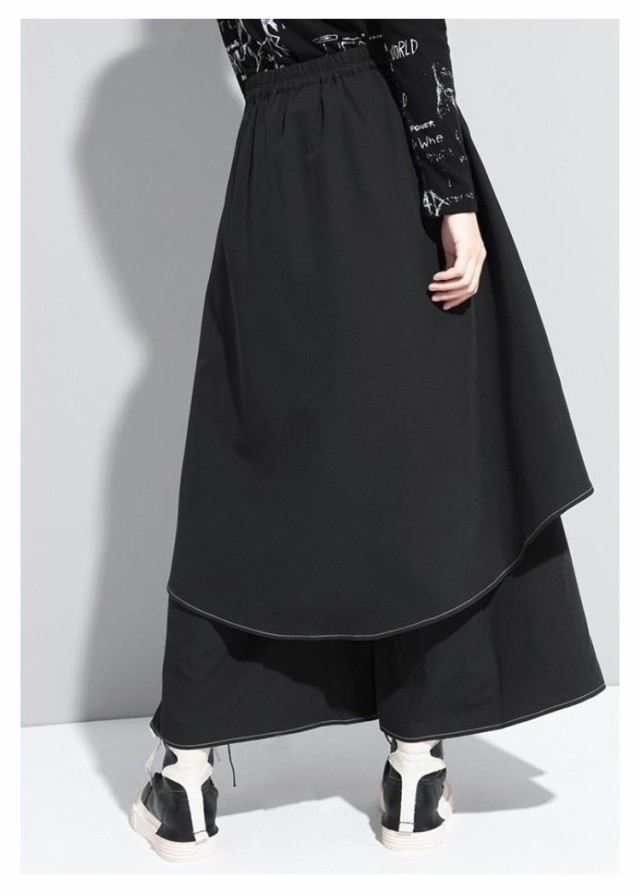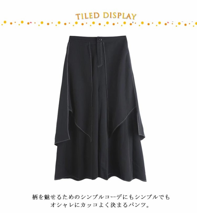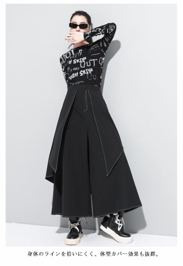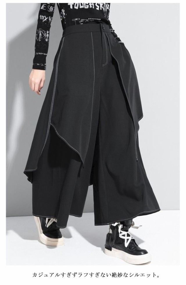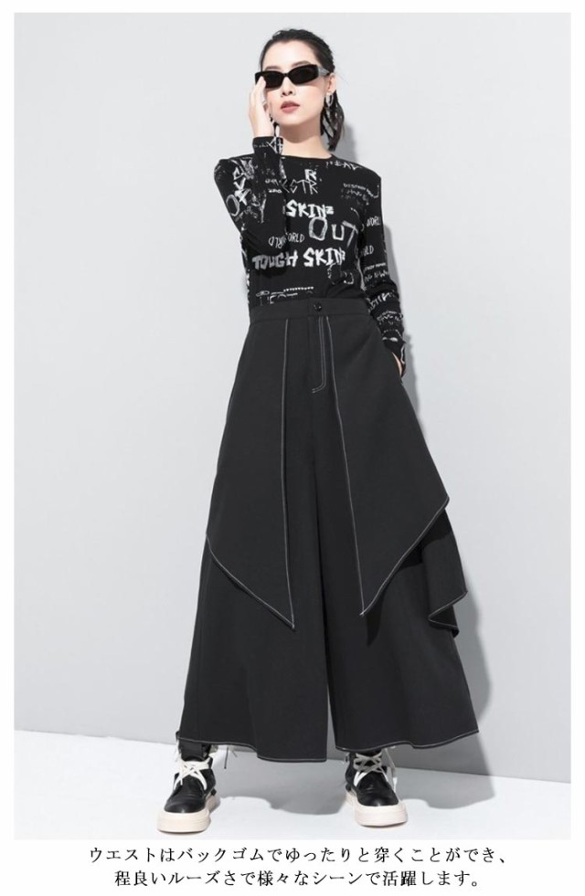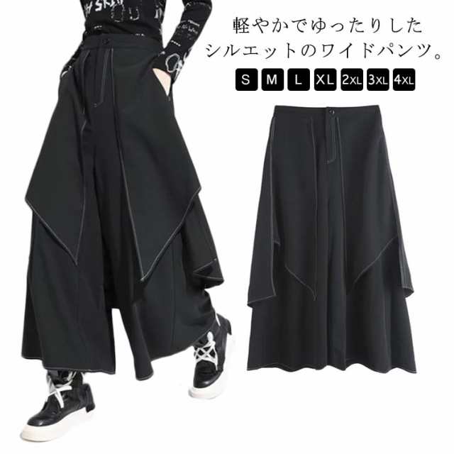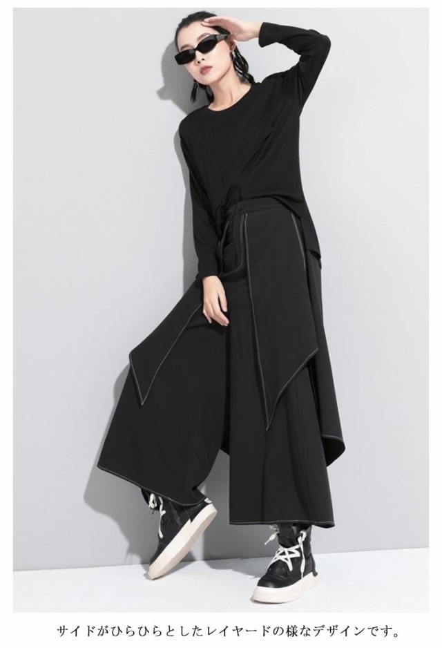スカート風 パンツ ワイドパンツ レイヤード スカンツ ワイド ロング ガウチョ バギーパンツ フレアパンツ ロングスカート 無地 袴パンツ 変形 ダンスパンツ ドレープ モード系 イージーパンツ ボトムス スカンツ きれいめ