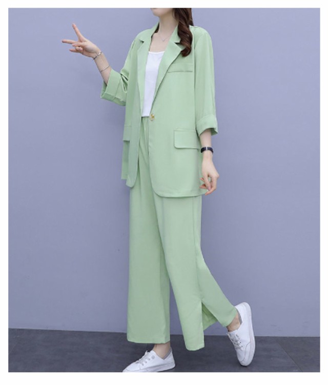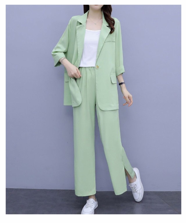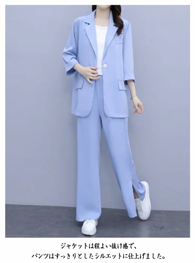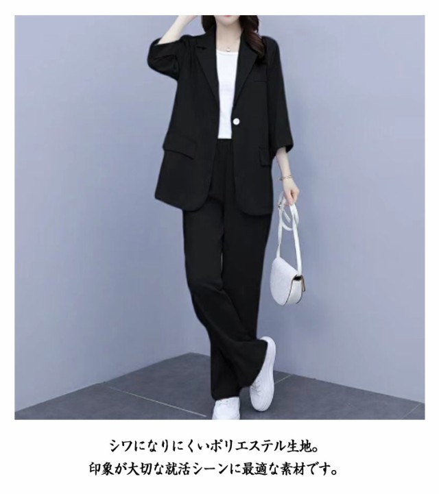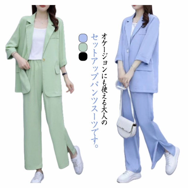 パンツスーツ セットアップ レディース スーツ 上下セット 3点セット インナー付き 7分袖 テーラードジャケット ワイドパンツ ビジネススーツ リクルートスーツ フォーマルスーツ セレモニースーツ 通勤 上品 面接 オフィス 入学式 春 夏 秋