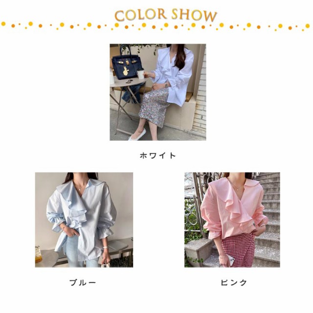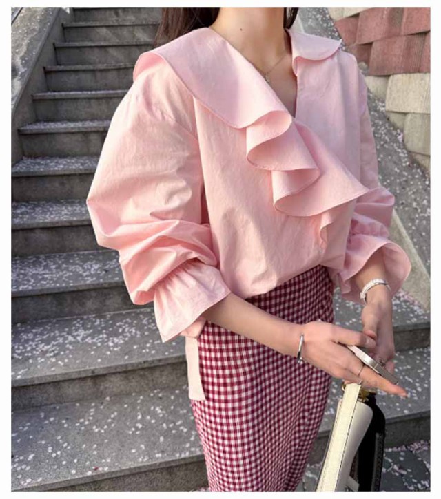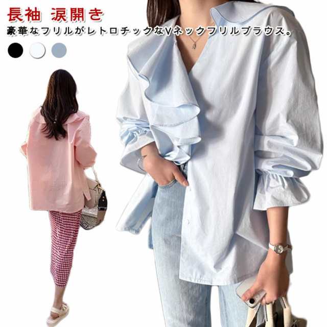 ラッフルブラウス トップス シャツ レディース トップス シャツ ブラウス 長袖 フリル 涙開き ビッグフリルカラー キャンディースリーブ フリル ひらひら パフスリーブ ボリューム袖 二の腕カバー 上品 清楚 ビジネス オフィス 通勤