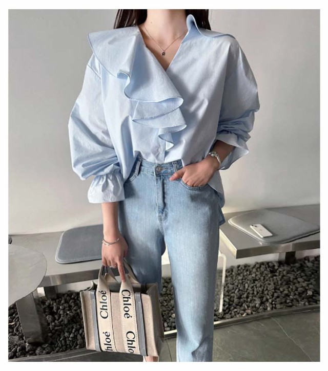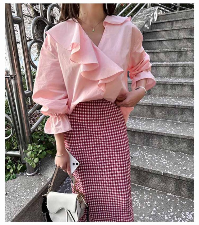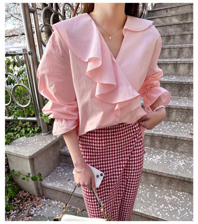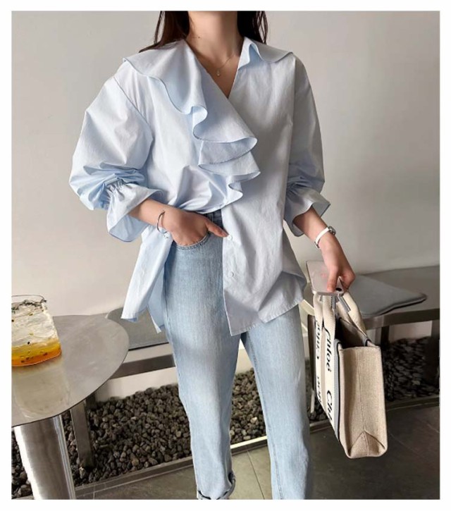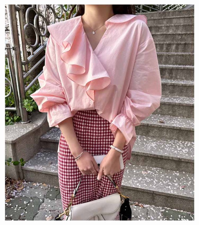 | 豪華なフリルがレトロチックなVネックフリルブラウス。 立体的なビッグカラーで顔周りを品良く華やかな印象にしてくれ、スタイルアップ効果に! 落ち感のある滑らかな生地で大人のこなれ感をプラス。ボリューム袖とゆったり身幅で体型カバーも◎ ヒップにかかる長めの丈感なので、ウエストINアウトどちらでもバランス良く着用が可能。 単品使いはもちろん、オールインワンやジャンパースカートのインナーにも最適な1枚です。 | |