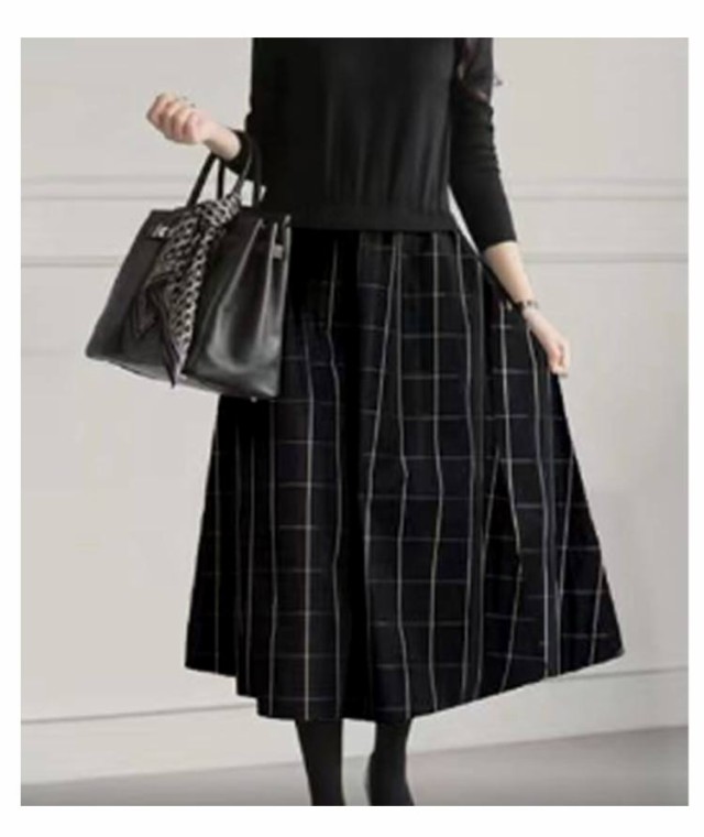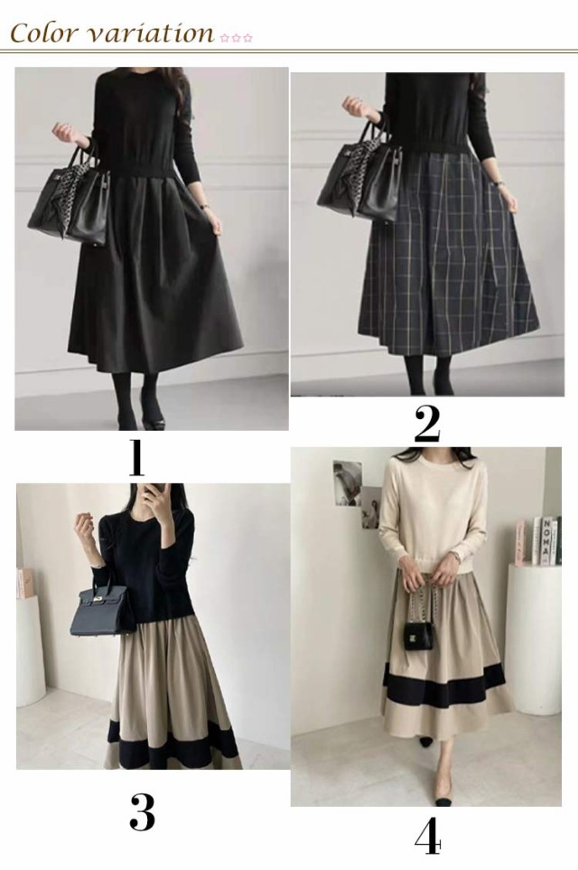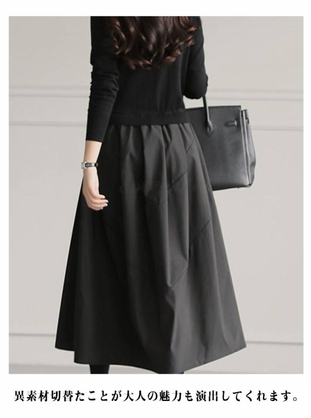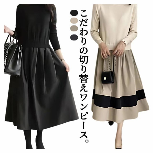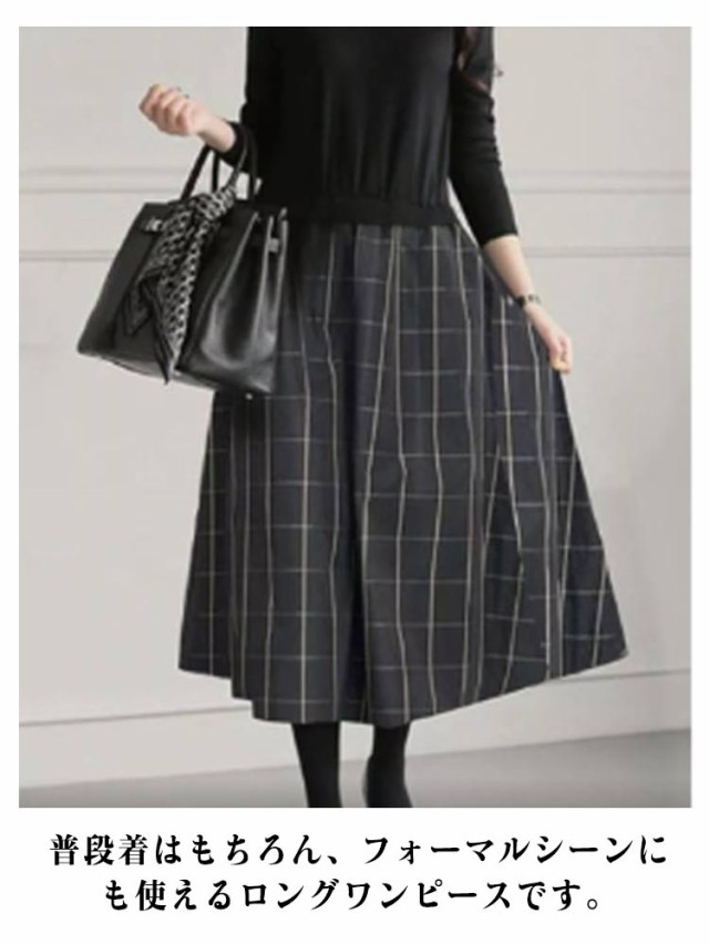 ワンピース 40代 ワンピース 秋冬 きれいめ 50代 春 ニット切替ワンピース ドッキングワンピース フォーマル ロング 切り替え 異素材 秋服 長袖 カジュアル 大きいサイズ レディース 秋冬 体型カバー ロング丈 おしゃれ 30代 チェック 着痩せ 丸首