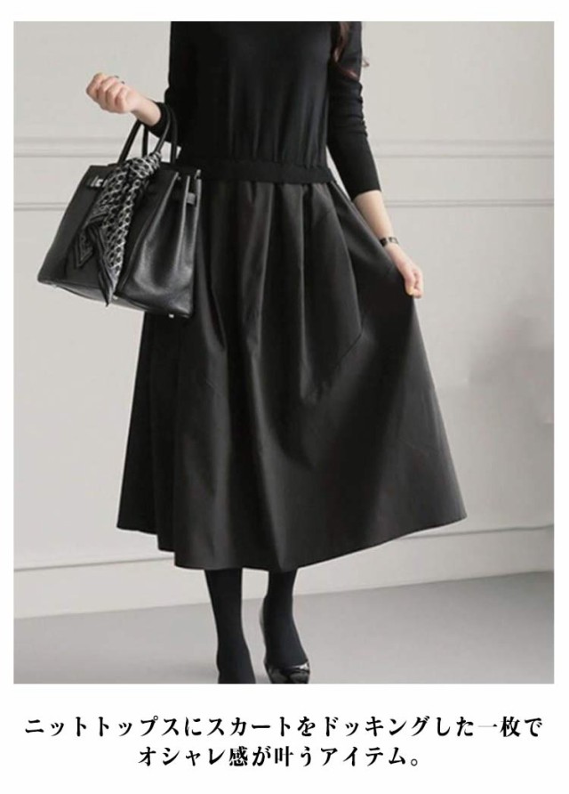 | こだわりの切り替えワンピース。 ニットトップスにスカートをドッキングした一枚でオシャレ感が叶うアイテム。 異素材切替たことが大人の魅力も演出してくれます。 広がり過ぎないシルエット×ミモレ丈がオトナ女子の洗練的な印象も◎ 普段着はもちろん、フォーマルシーンにも使えるロングワンピースです。 | |