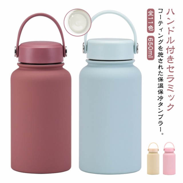 650ml マグボトル 水筒 セラミック コーティング 保温 保冷 タンブラー 蓋付き ボトル ステンレス 真空断熱 二重構造 大容量 広口 洗いやすい セラミックタンブラー 携帯 持ち運び こぼれない かわいい おしゃれ マイボトル ハンドル付き シンプル 炭酸 コーヒー 【送無】