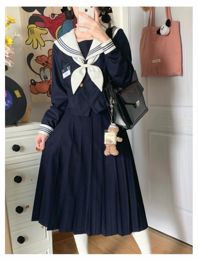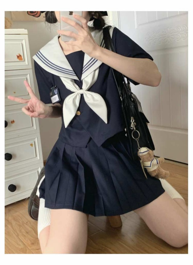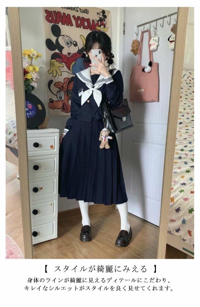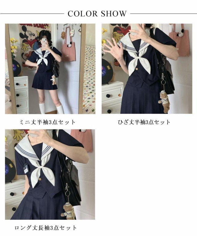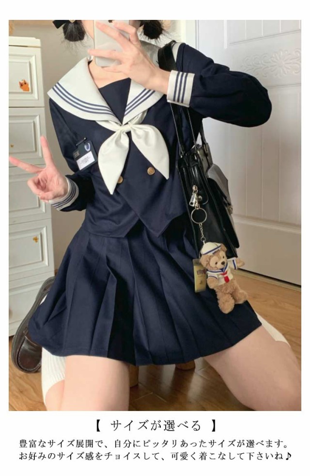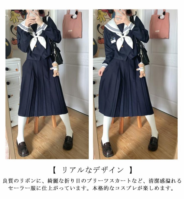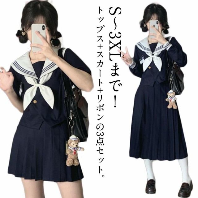 セーラー服 コスプレ 3点セット 長袖 半袖 シャツ スカート ロング丈 ひざ丈 ミニ丈 リボン 上下セット 紺 ネイビー 白 大きいサイズ 女子高生 制服 女子高校生 JK制服 女子 高校生 学園祭 文化祭 レディース セーラー服 ハロウィン コスチューム衣装 衣装 仮装