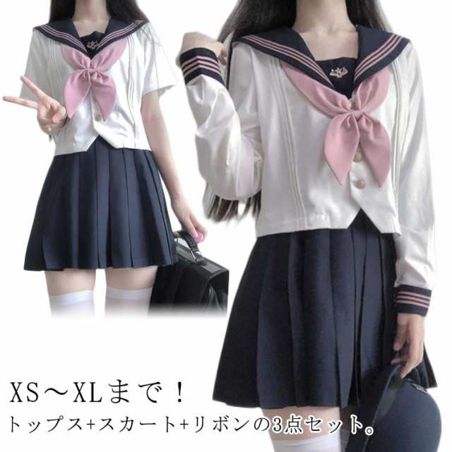 女子高校生 制服 セーラー服 3点セット 長袖 半袖 シャツ スカート リボン ピンク 女子高生 JK制服 上下セット 女子 高校生 学生服 学園祭 文化祭 コスプレ レディース セーラー服 プリーツスカート ミニ丈 ハロウィン 【送料無料】