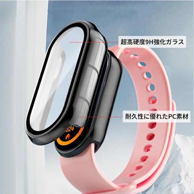 Xiaomi Smart Band 9 用 ケース カバー ガラスフイルム付き 全面保護 耐衝撃 強化ガラス Xiaomi Mi Band 9 保護ケース 一体型ケース Xiaomi Mi Band 9 保護ケース 軽量 装着簡単 キズ防止 Xiaomi Mi Band 9 カバー クリア 画面保護 シャオミ band9 ケース PC