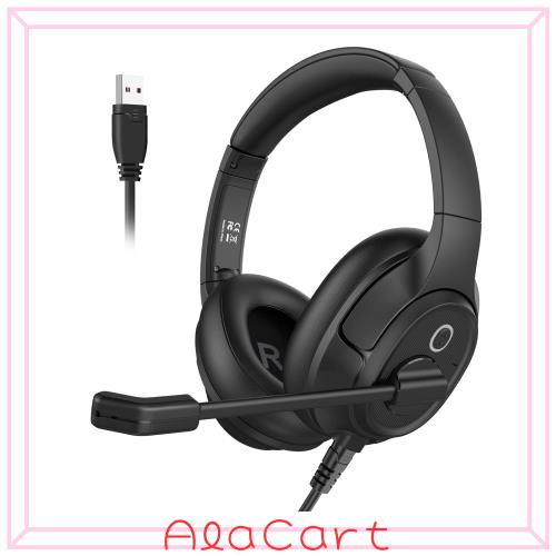 EKSA ヘッドセット USB接続 通話ノイズリダクション マイク搭載 PC用ヘッドセット ビジーライト付き ミュート機能 手元コントローラー WE