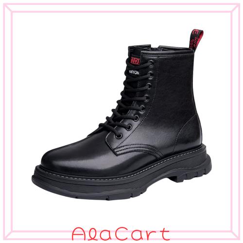 [MERLIN] 8CM UP メンズ シークレット 厚底 バイクブーツ 背が高くなる靴 アウトドアブーツ (ブラック, 27)…