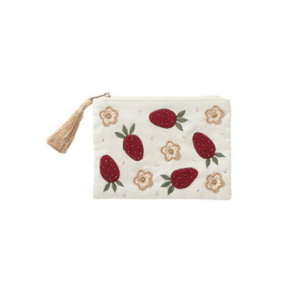 東京かんかん いちご刺繍ポーチS アイボリー M42-2704IV |b03