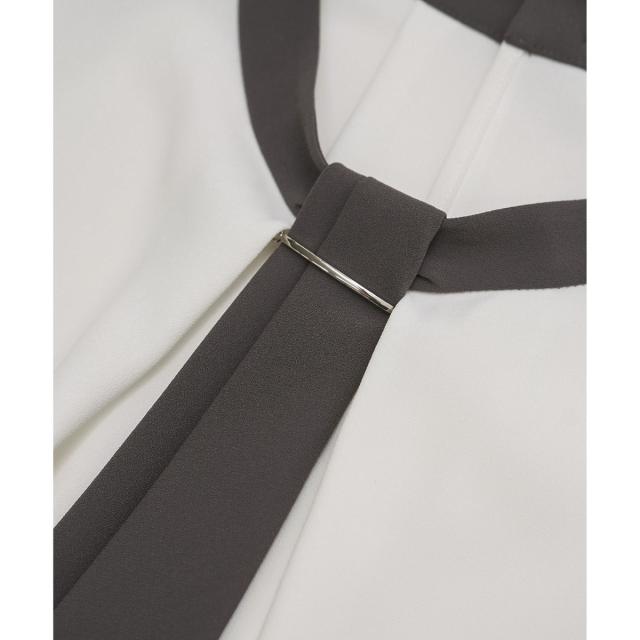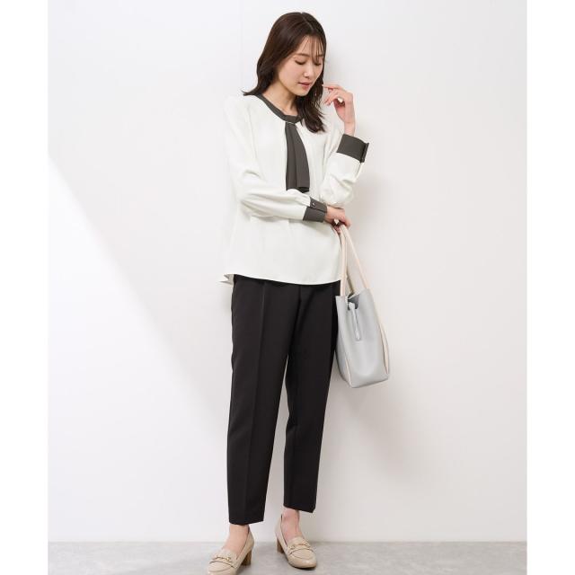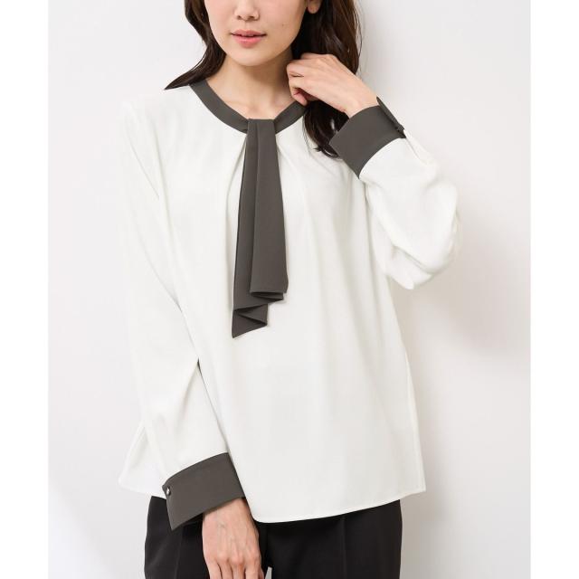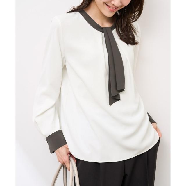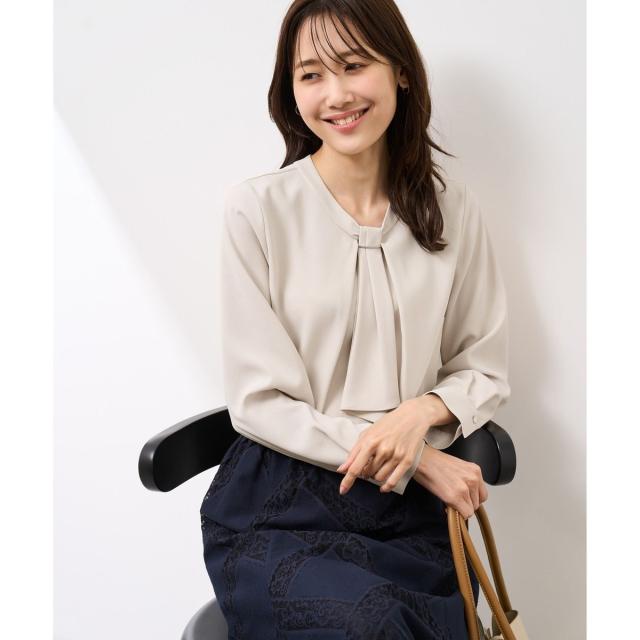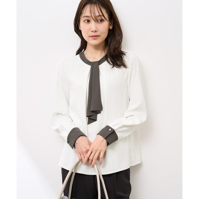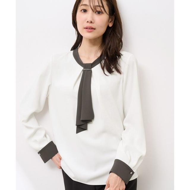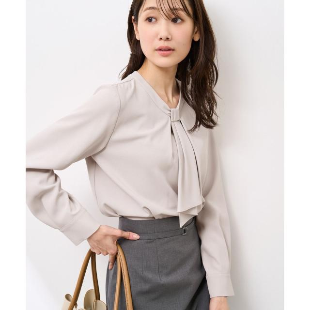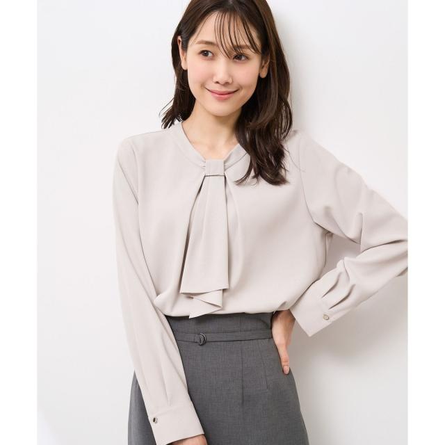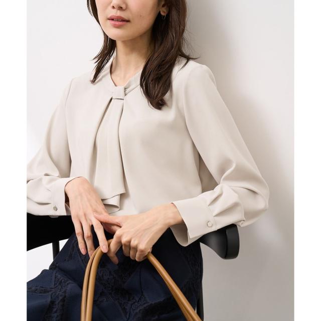 【WEB限定カラー・サイズ】メタルパーツフロントフリルタイブラウス/通勤対応