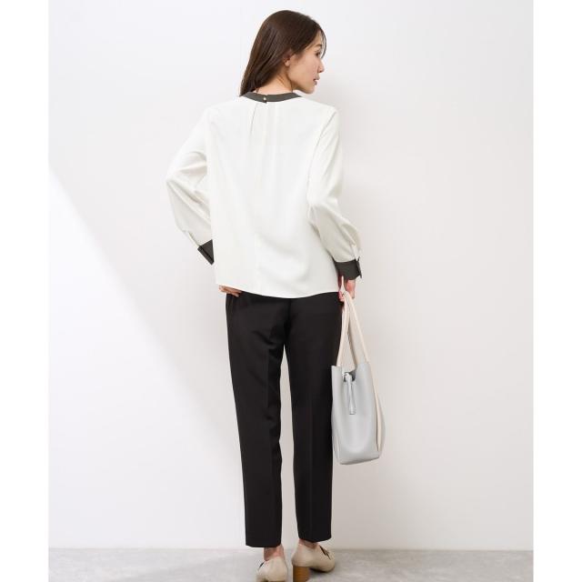 ・汎用性が高く、きちんと感のある長袖プルオーバーブラウス。