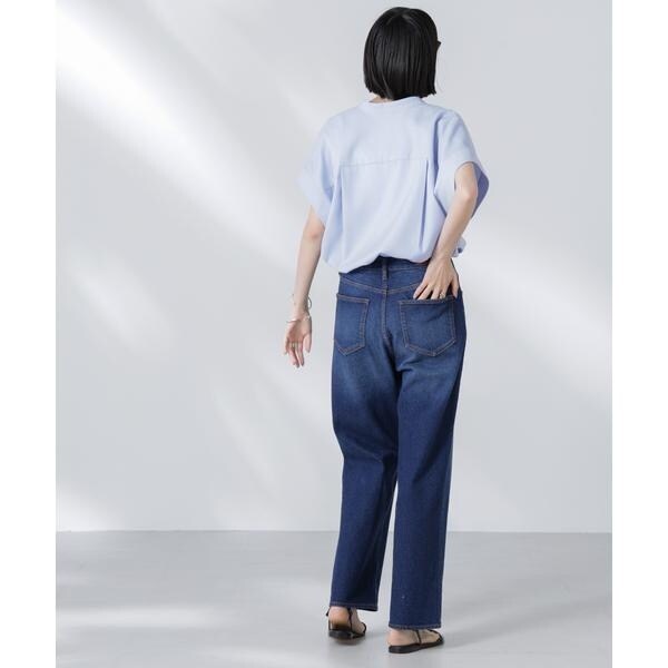 ・バンドカラーがきちんと感と洗練された印象をプラス