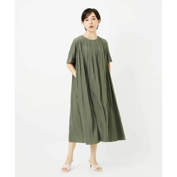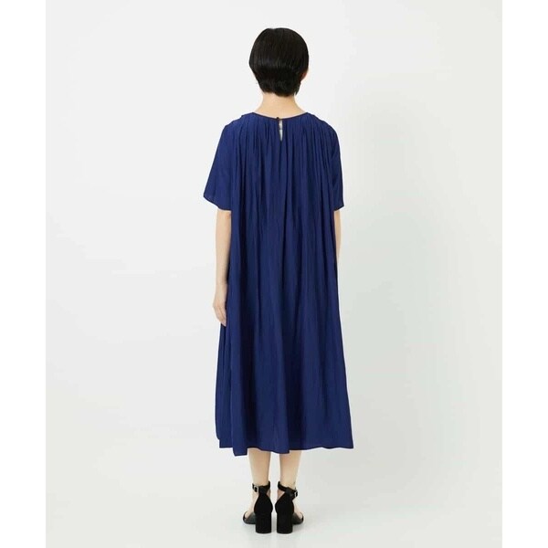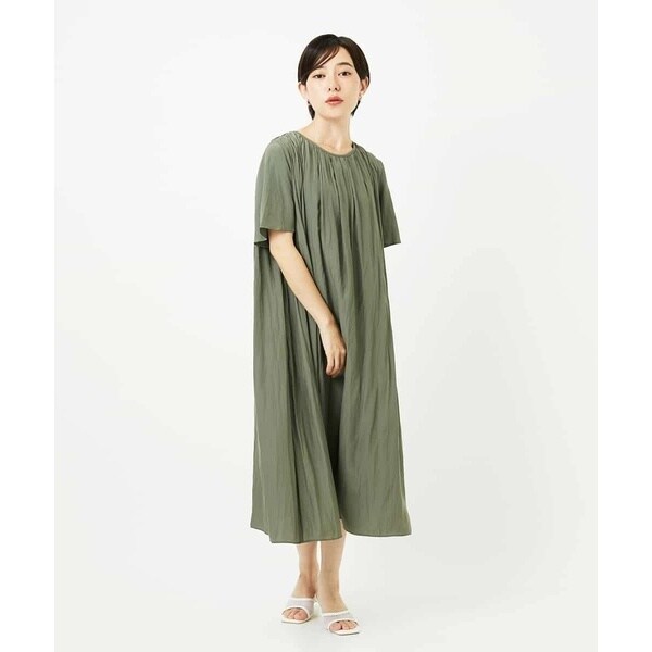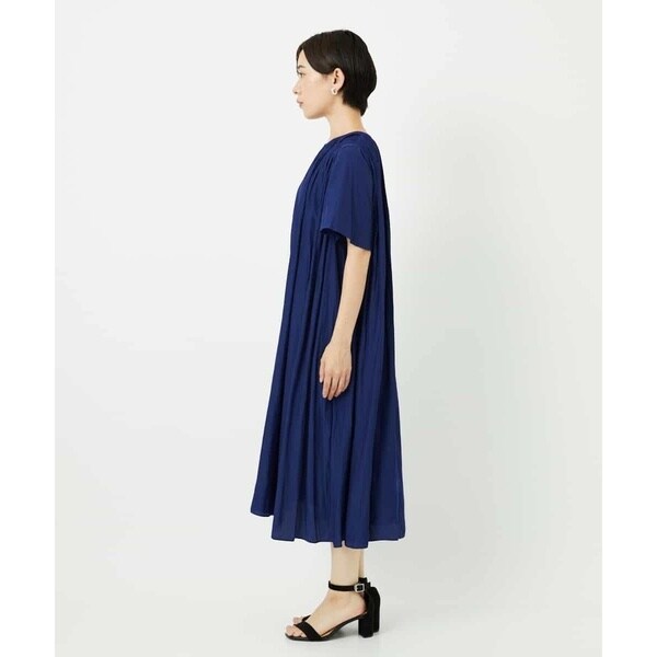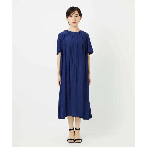 タック&ギャザーを施した縦長ラインが美しいデザインワンピース