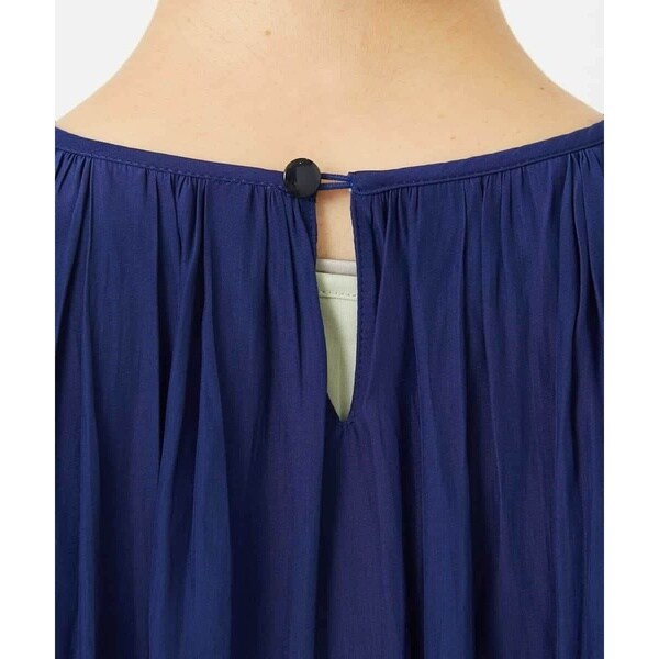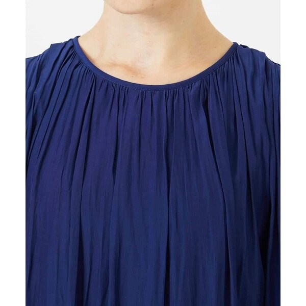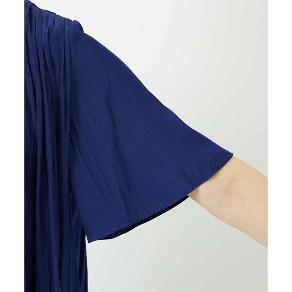 マイルドな光沢感のデシン素材を使用し、歩くたびにエレガントに揺れるふんわりドレープシルエットがエレガントなひと品。