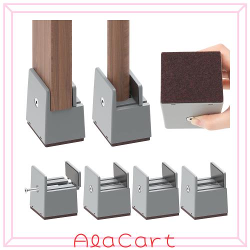 【テーブルたかさ調節】パッケージ内容:4個セット(高さ5cm)。適応脚サイズ0~5.4cm調節可能。色:グレー。