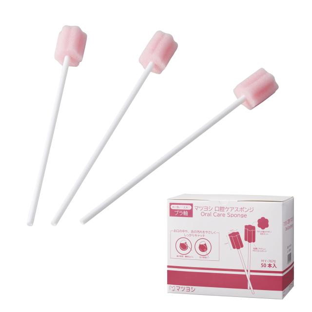 マツヨシ 口腔ケアスポンジ 50本 プラ スチック軸 個包装 (花形 ピンク)