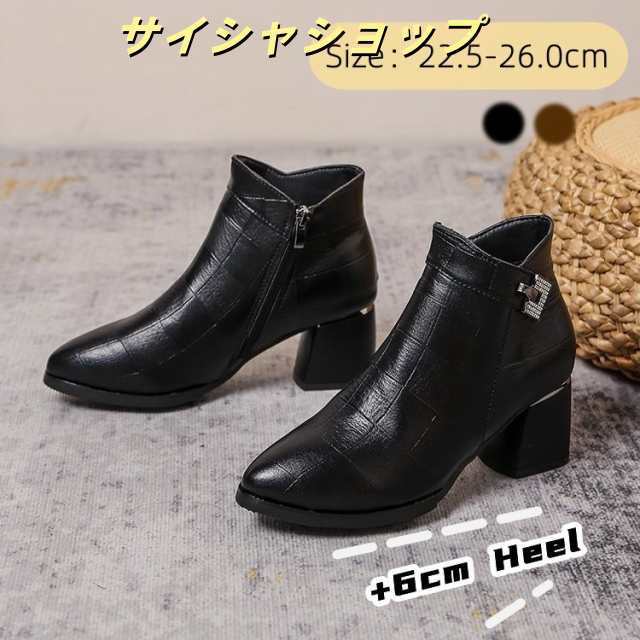 秋冬 ブーツ レディース ショートブーツ 太ヒール 6cm 美脚 疲れない 歩きやすい 足が痛くならない 軽量 小さい 大きい サイズ冬 北海道 ハイヒール PU 黒 丈 靴 22.5cm-26.0cm【送料無料】
