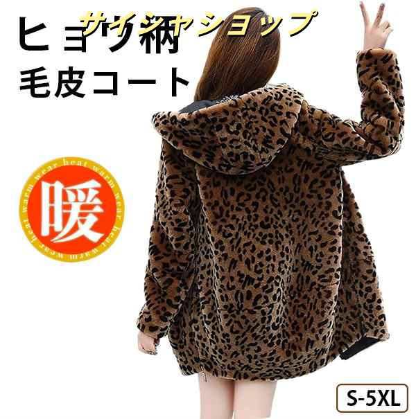 ヒョウ柄 ファーコート レディース フェイクファーコート ロング丈 秋冬 毛皮コート ブルゾン 防寒 コート ファージャケット 帽子付き ふわふわ もこもこ おしゃれ 大人気 体型カバー きれいめ 長袖 カジュアル 大きいサイズ アウター