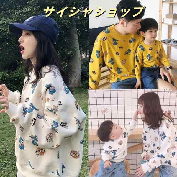 秋服 親子ペアルック 可愛い 恐竜 お揃い ペアルック 子供服 長袖 パーカー カジュアル 親子ペアルック ご家族お揃い キッズ 旅行