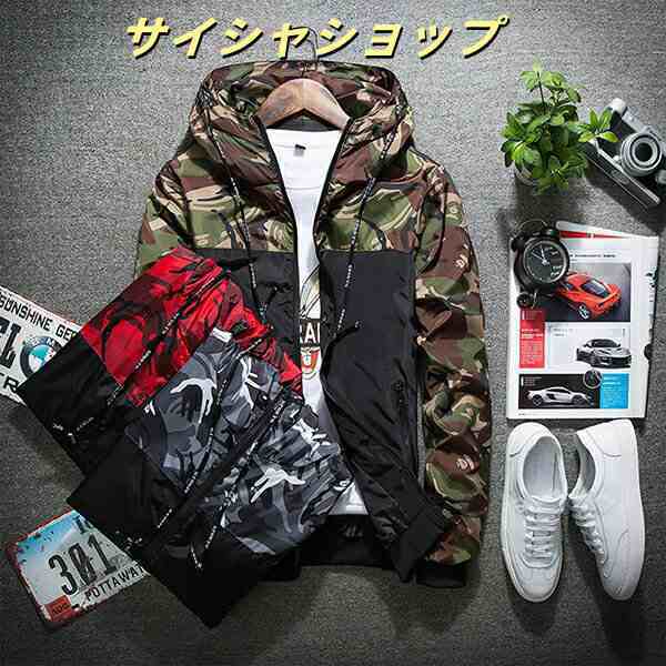 マウンテンパーカー メンズ ジャケット 迷彩ウインドブレーカージャケット 定番人気デザイン ウィンドブレーカー 迷彩 ジャケット 軽量 防風 カムフラージュ スポーツ アウトドア パーレジャーファッション メンズ 春 夏 秋 送料無料