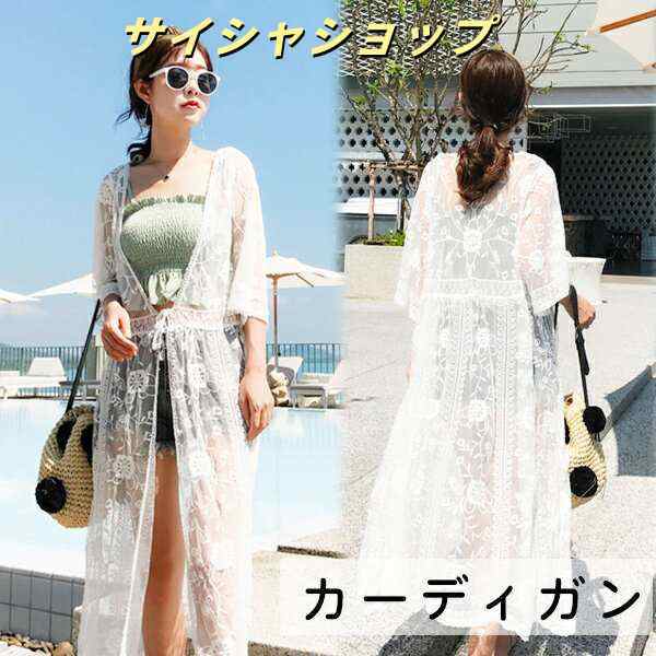 ラッシュガード 7分袖 花柄 レースロング カーディガン ボヘミアン リゾート レディース カバーアップ花柄 刺繍 着物ス リーブ フレア袖 ジレ ワンサイズ シースルー ビーチ 海外 持ち運び便利 水着の上