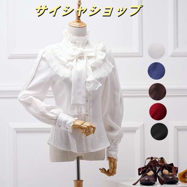 ゴスロリ ブラウス レディース シャツ ロリータ ブラウス 長袖 立ち襟 シフォンシャツ ロマンティック レース ロリータ ゴスロリ フリルブラウス フォーマル リボン付きブラウス lolita 刺繍 レディース トップス シャツ 姫袖 可愛い 2タイプ 5color