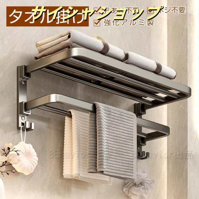タオル掛け 浴室壁 タオル掛け上 バスタオルハンガー 収納 タオルバー 90°格納 タオルスタンド 着替え 浴室 バス 洗面所 穴開け不要 傷つけない