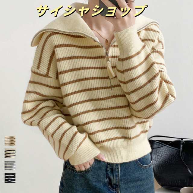 ニット セーター トップス ビッグカラー レディース 冬 ストライプ柄 柔らか ふんわり ゆったり きれいめ おしゃれ 通勤 入園式 卒業式 デザイン フォーマル お出かけ カジュアル 送料無料