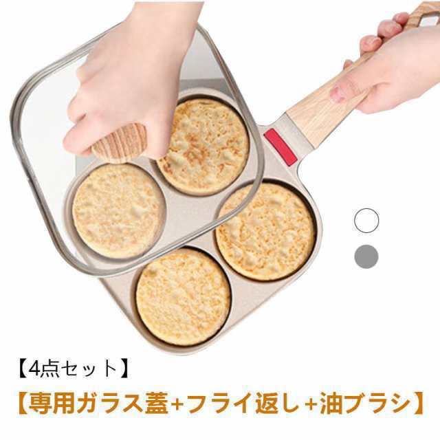 目玉焼き フライパン 4点セット 4つ穴フライパン 4つ穴円形フライパン IH対応 仕切り付き 目玉焼きフライパン 卵焼きフライパン くっつかない 洗いやすい ガラス蓋付き 大判焼き器 卵焼き 大判焼き 今川焼 今川焼き 焼きおにぎり ホットケーキ お弁当 弁当 朝食フライパン