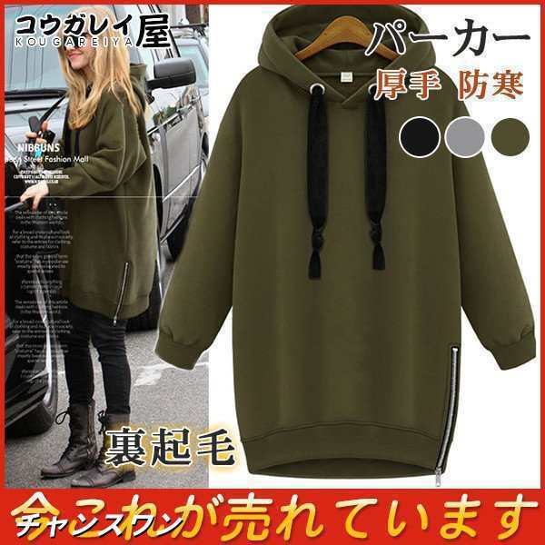 送料無料 パーカー レディース トップス コート ジャケット フード付き ロング 裏起毛 アウター ゆったり 裏ボア スウェット 厚手 サイドジッ