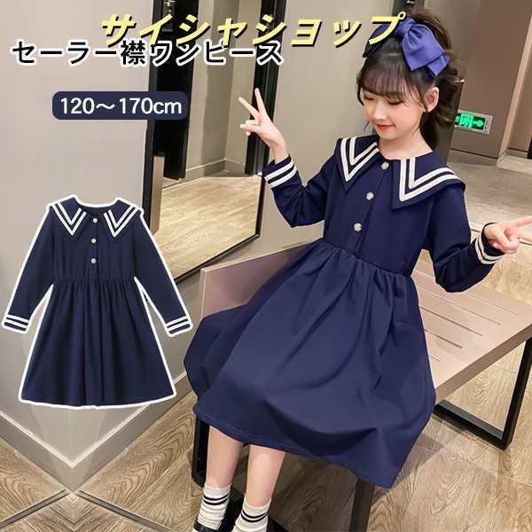 セーラー服 キッズ ワンピース 森ガール 制服 卒業式 スーツワンピース 女の子 膝丈 ワンピース レディース 長袖 フォーマル セーラー風 学院系 子供制服 長袖 キッズ セーラー襟 フレア ジュニア 卒園式 入学式 学生服