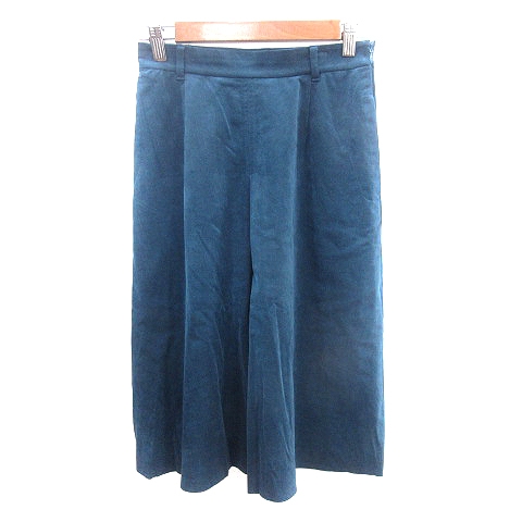 【中古】ヒューマンウーマン HUMAN WOMAN タイトスカート プリーツ ワンボックス ミモレ ロング フェイクスエード 青
