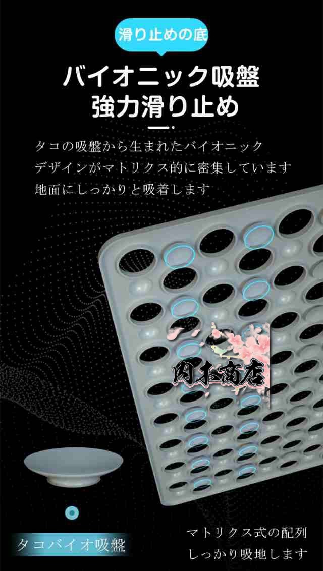 商品詳細バイオニック吸盤、強力滑り止め、タコの吸盤から生まれたバイオニックデザインがマトリクス的に密集しています。地面にしっかりと吸着します