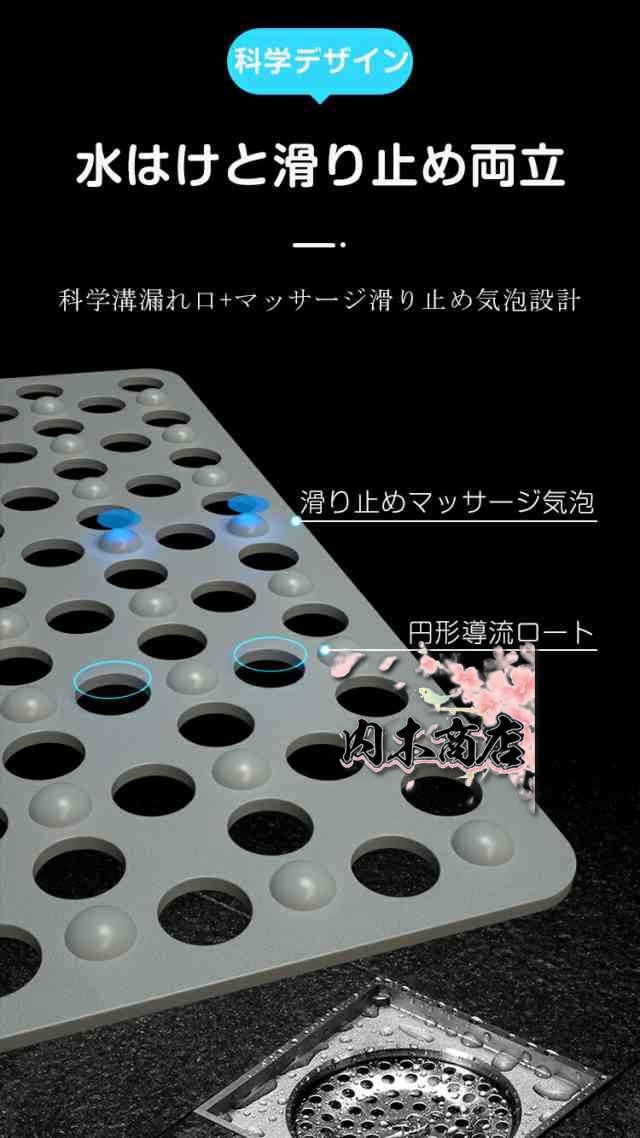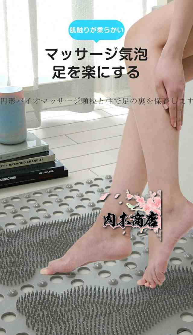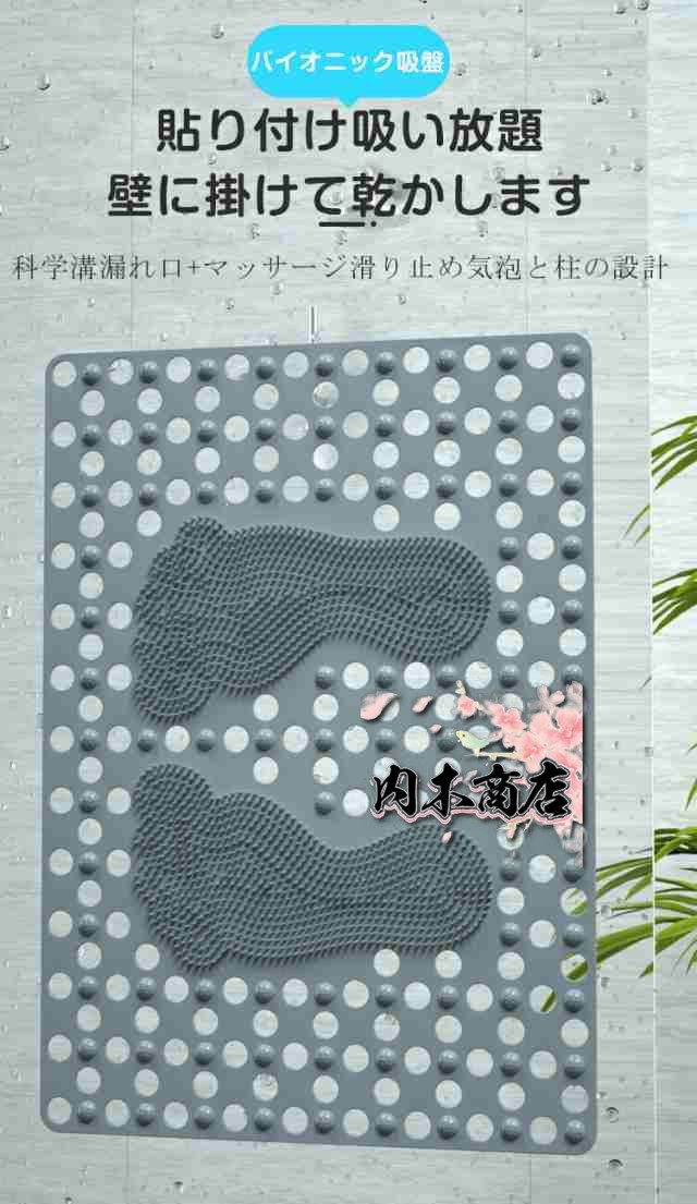 科学デザイン、水はけと滑り止め両立、科学溝漏れ口+マッサージ滑り止め気泡設計、肌触りが柔らかい、円形バイオマッサージ顆粒と柱で足の裏を保養します