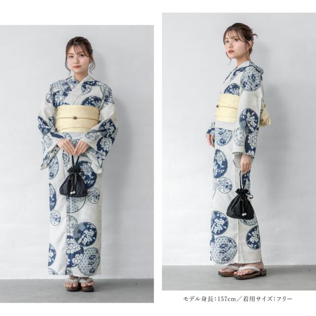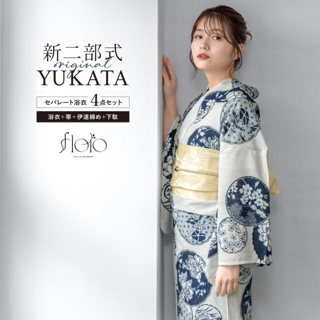 浴衣 セット レディース 二部式 セパレート 浴衣セット 半幅帯 2025 floro 簡単 悩まない 涼しい 吸水速乾 白 青 紺 クリーム 鞠 大人 おしゃれ 可愛い 下駄 フリー 送料無料