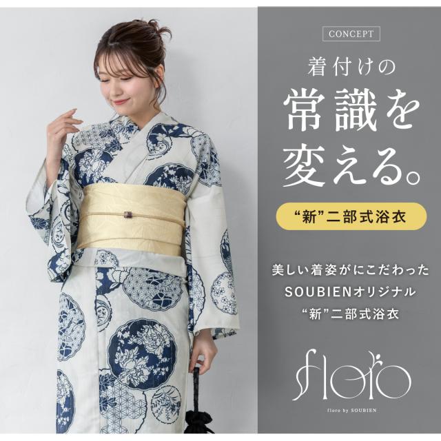 SOUBIENのプライベートブランド『floro by SOUBIEN』(フローロ)の女性用セパレート浴衣4点セットです。
