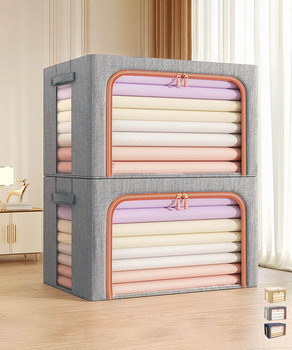 66Lの大容量で、大きな透明窓付きの折りたたみ式収納ボックス。