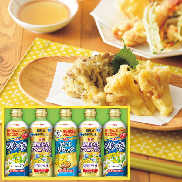 【おいしさそのまま、ヘルシー改善。カラダ想いの健やかオイルのバラエティセットです。】 「日清ヘルシーオフ」、「日清健康オイル アマニプラス」、「日清MCTリセッタ」が入ったオイルギフト。日清オイリオのヘルシーオイルだけを詰め合わせた、贈る人の健康を気遣う贈り物です。