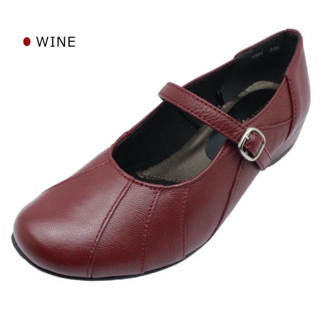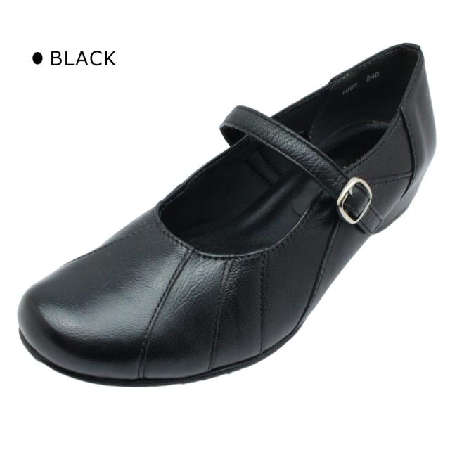 Hush Puppies ハッシュパピー レディース パンプス L-1001FT 幅広 3E 防滑 本革 レザー 甲バンド ウェッジソール フォーマル 靴 ブラック 1001