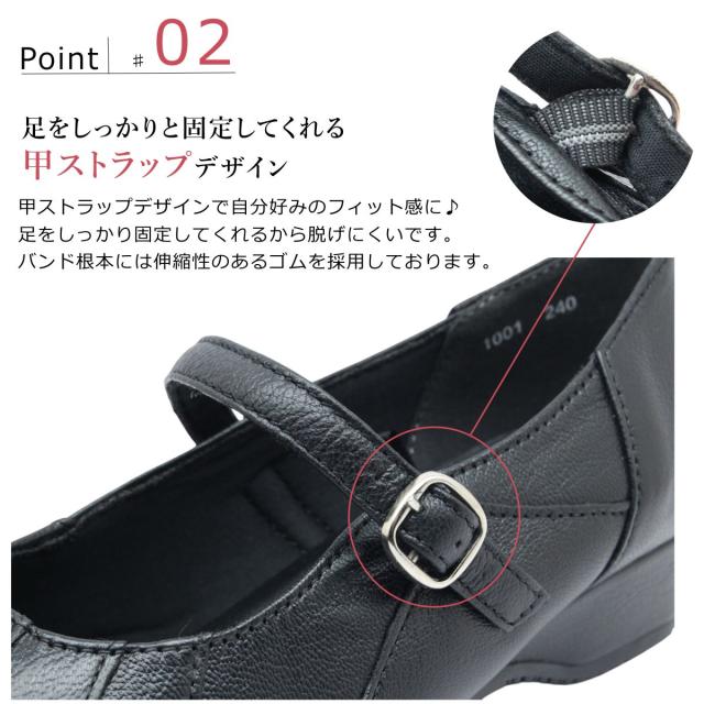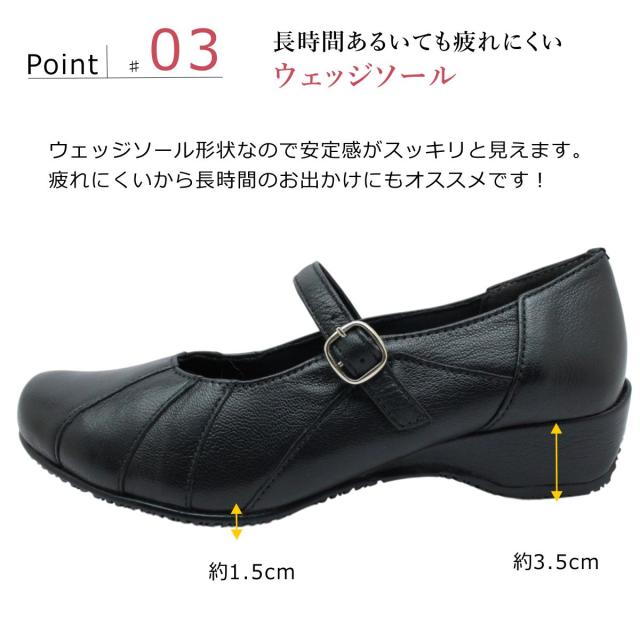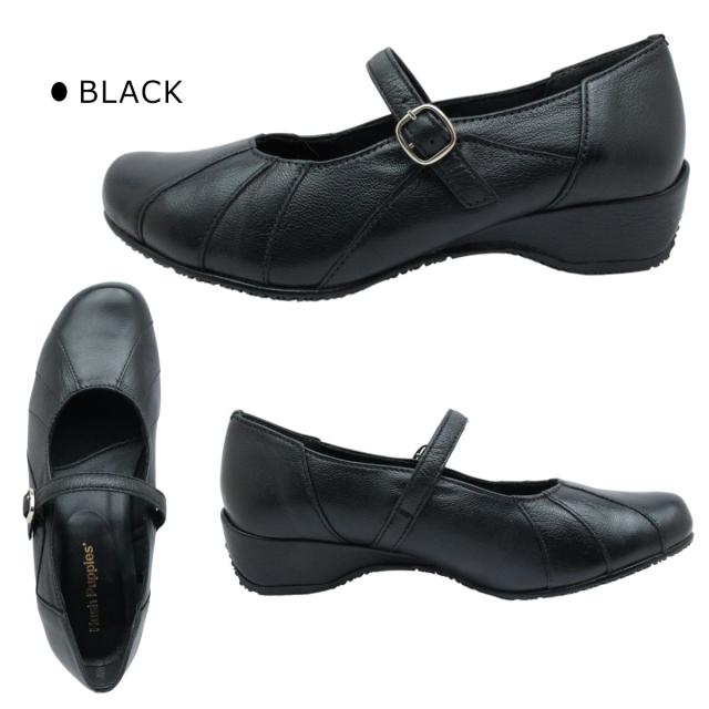 | Hush Puppies ハッシュパピー レディース パンプス L-1001FT 幅広 3E 防滑 本革 レザー 甲バンド ウェッジソール フォーマル 靴 ブラック 1001 |