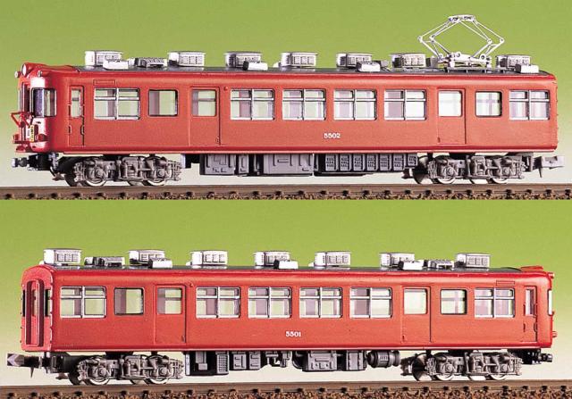 グリーンマックスの未塗装組立キット、名鉄5500系 2輌編成セットです。