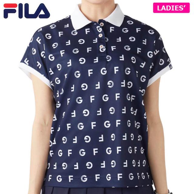FILA フィラ レディース モノグラム柄 フレンチスリーブ 半袖 ポロシャツ 755-610 ネイビー 2025年モデル