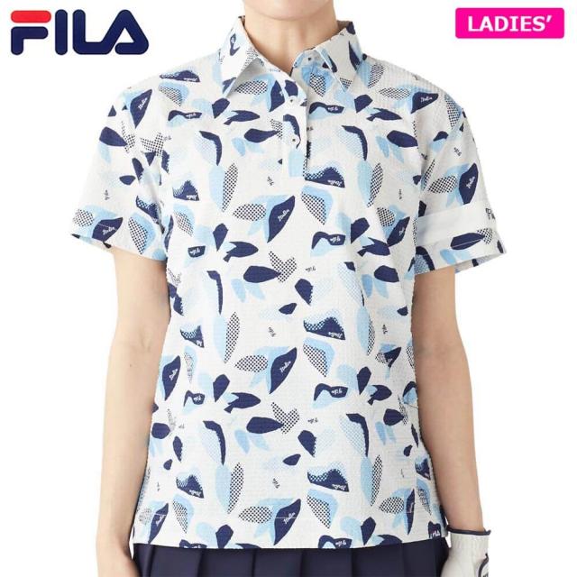 [50%OFF] ゴルフウェア FILA フィラ レディース シアサッカー リゾート柄 半袖 ポロシャツ 755-612 ネイビー [2025年春夏モデル] 特価