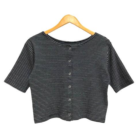 【中古】ローリーズファーム LOWRYS FARM カットソー カーディガン クルーネック ボーダー 半袖 F 黒 ブラック 白 ホワイト レディース
