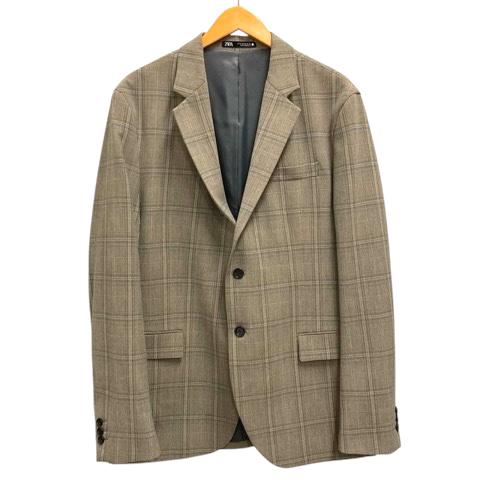 【中古】ザラ ZARA テーラードジャケット ブレザー シングル チェック 長袖 52 茶 ブラウン メンズ